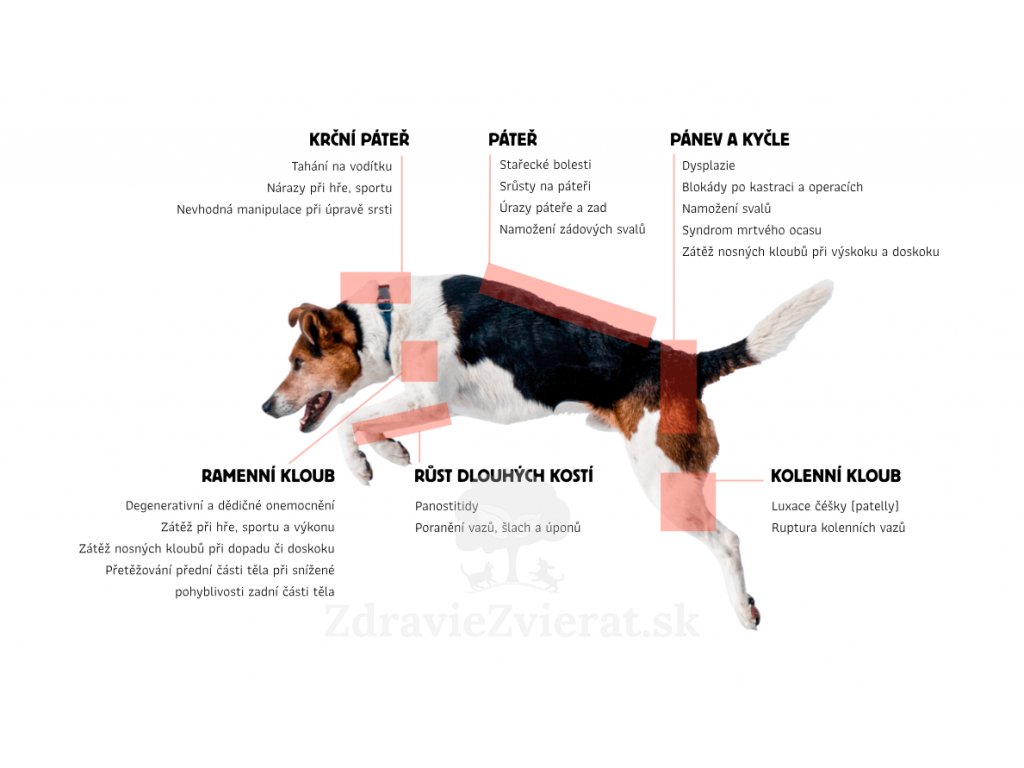 Napomáha proti bolesti a zápalu, na relaxáciu a regeneráciu svalov, na spevnenie väzov a šliach, napomáha znižovať opuchy a má pozitívny vplyv na srsť a kožu. Veterinárny...