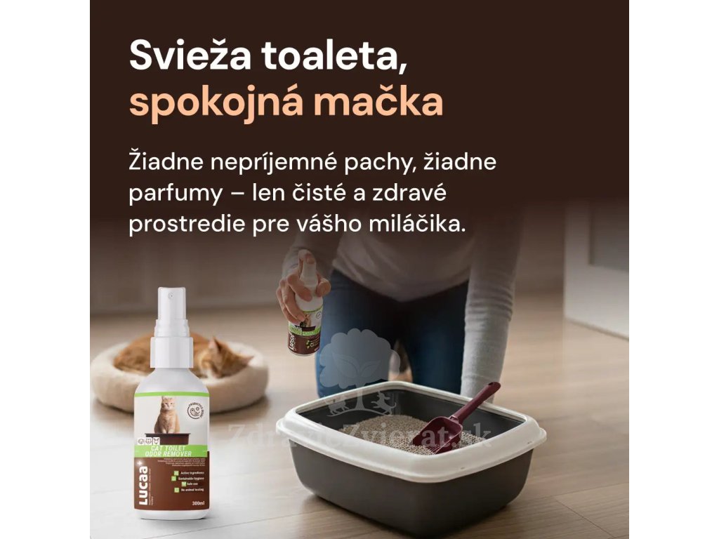 Organické molekuly zodpovedné za nepríjemný zápach, ako je moč a mokrý maznáčik, sa aktívne odstraňujú a nie sú maskované vôňami. LUCAA + Odstraňovač zápachu pracuje priamo na zdroji zápachu, ktorý sa ďalej nešíri. Je určený aj pre pelechy a záchody domácich miláčikov. Výrazne predĺži životnosť podstielky.