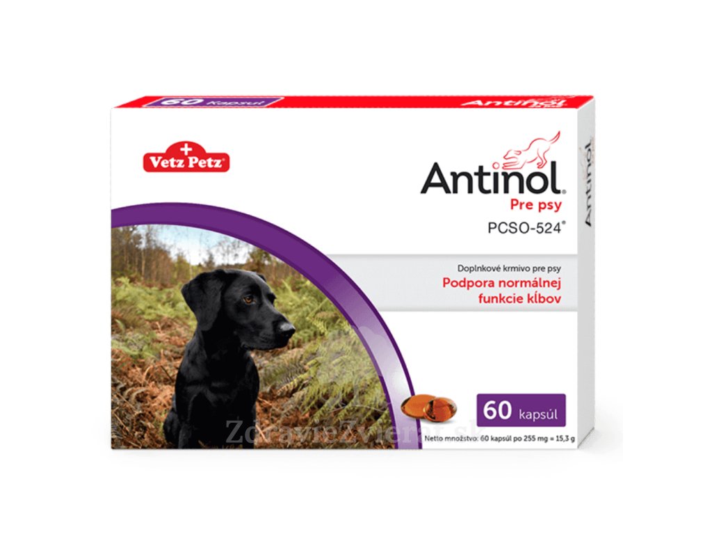 Antinol je výživový doplnok so svetoznámou účinnou látkou PCSO-524®, ktorá znižuje zápalové procesy a degradáciu chrupavky. V 90% prípadov zlepšuje pohyblivosť a zmierňuje bolesti kĺbov u psov s artritídou a podobnými kĺbovými problémami.