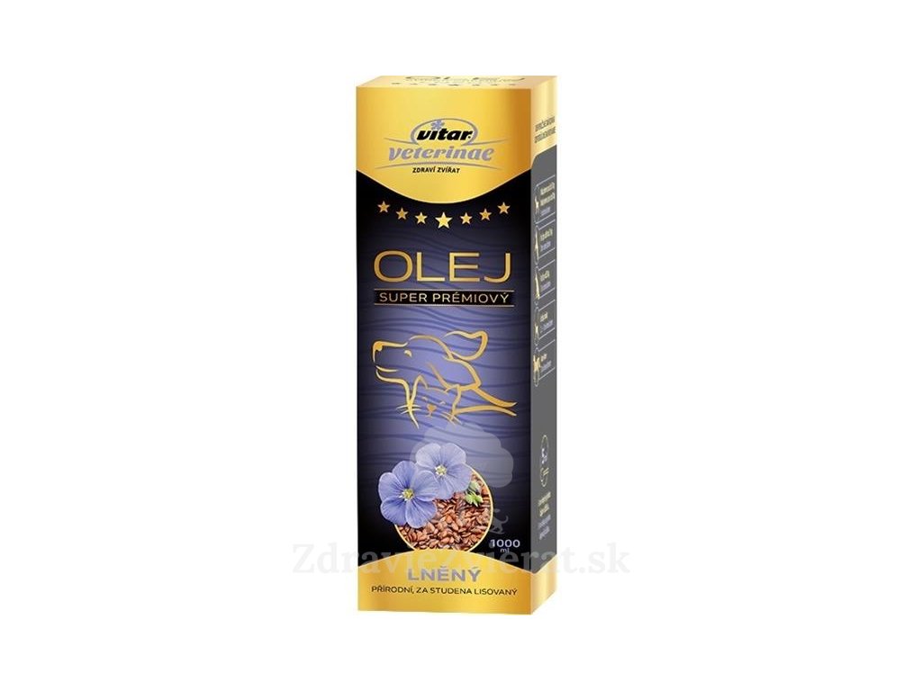 Za studena lisovaný rastlinný olej - zdroj esenciálnych mastných kyselín. Veterinárny prípravok pre psov.